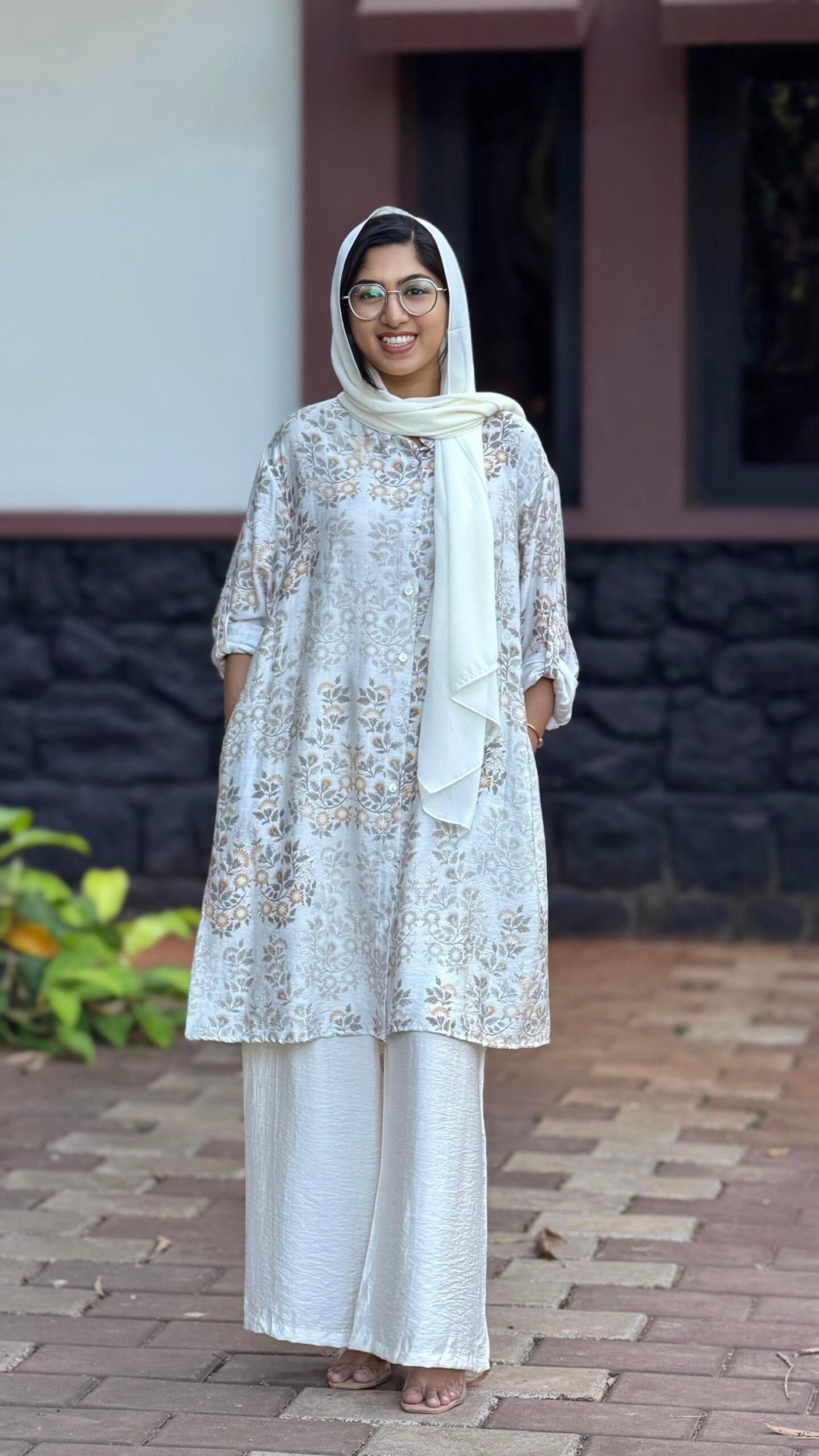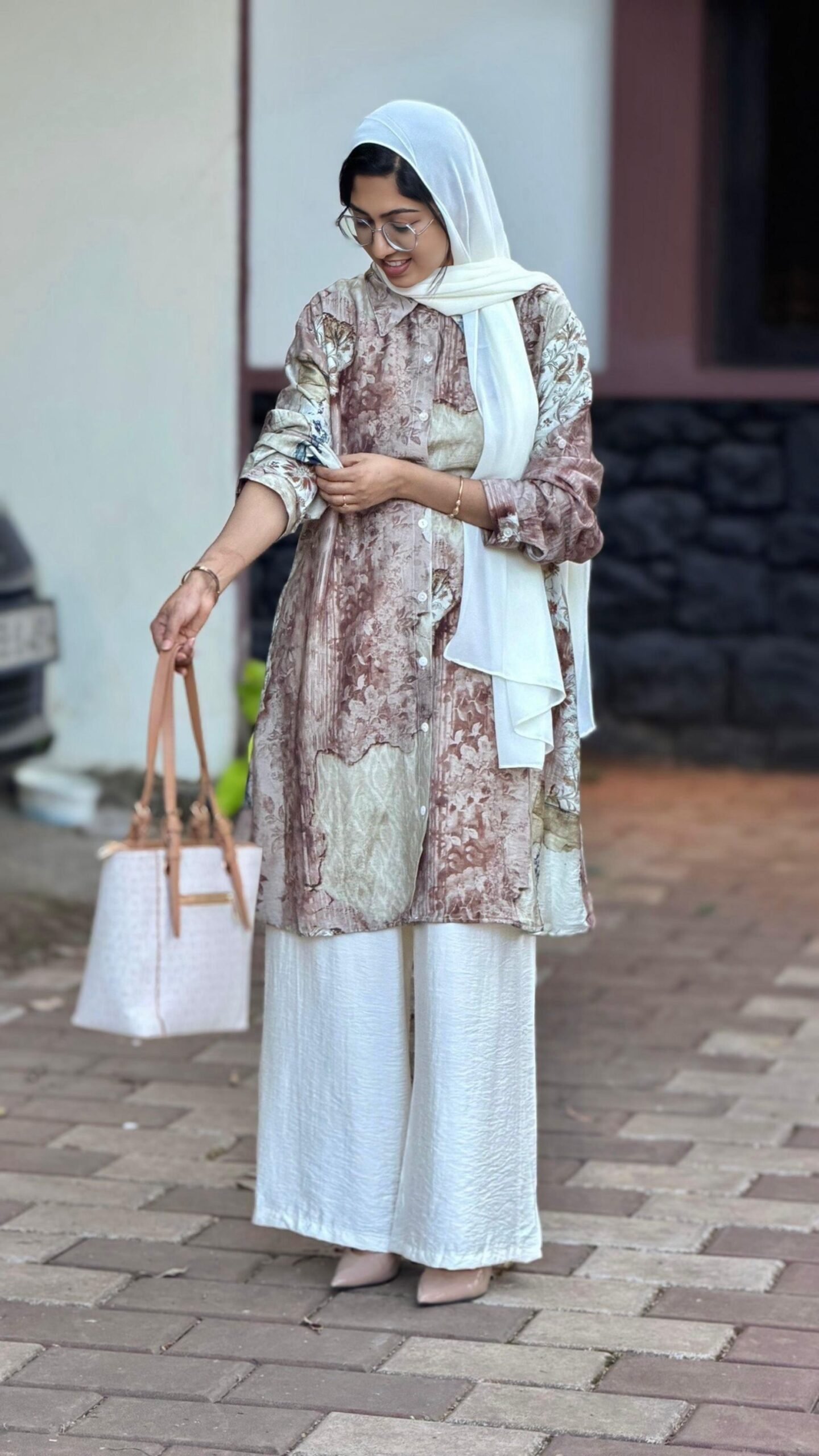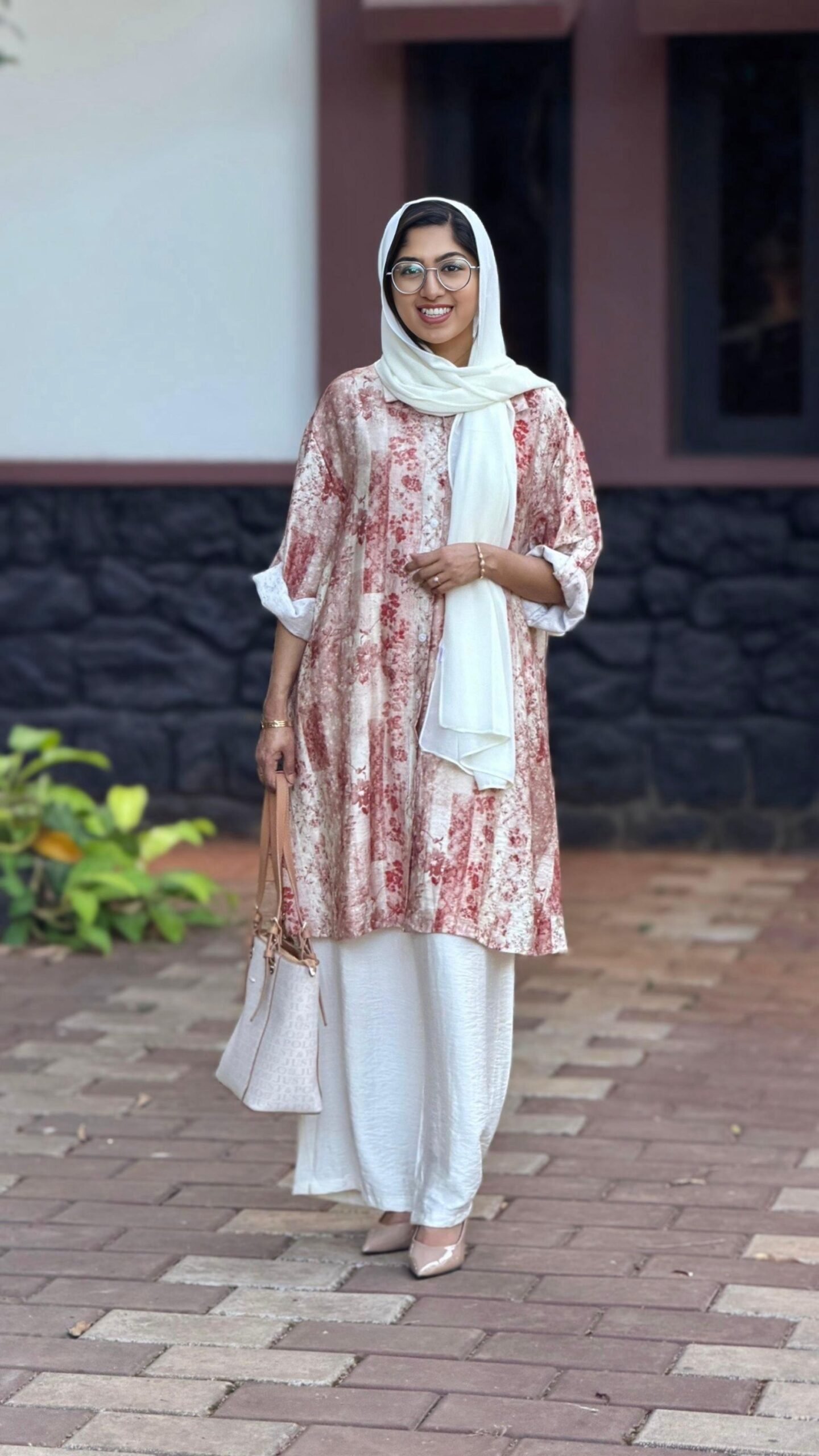 Modest Styling: Works beautifully with a soft hijab or scarf in neutral or matching tones.