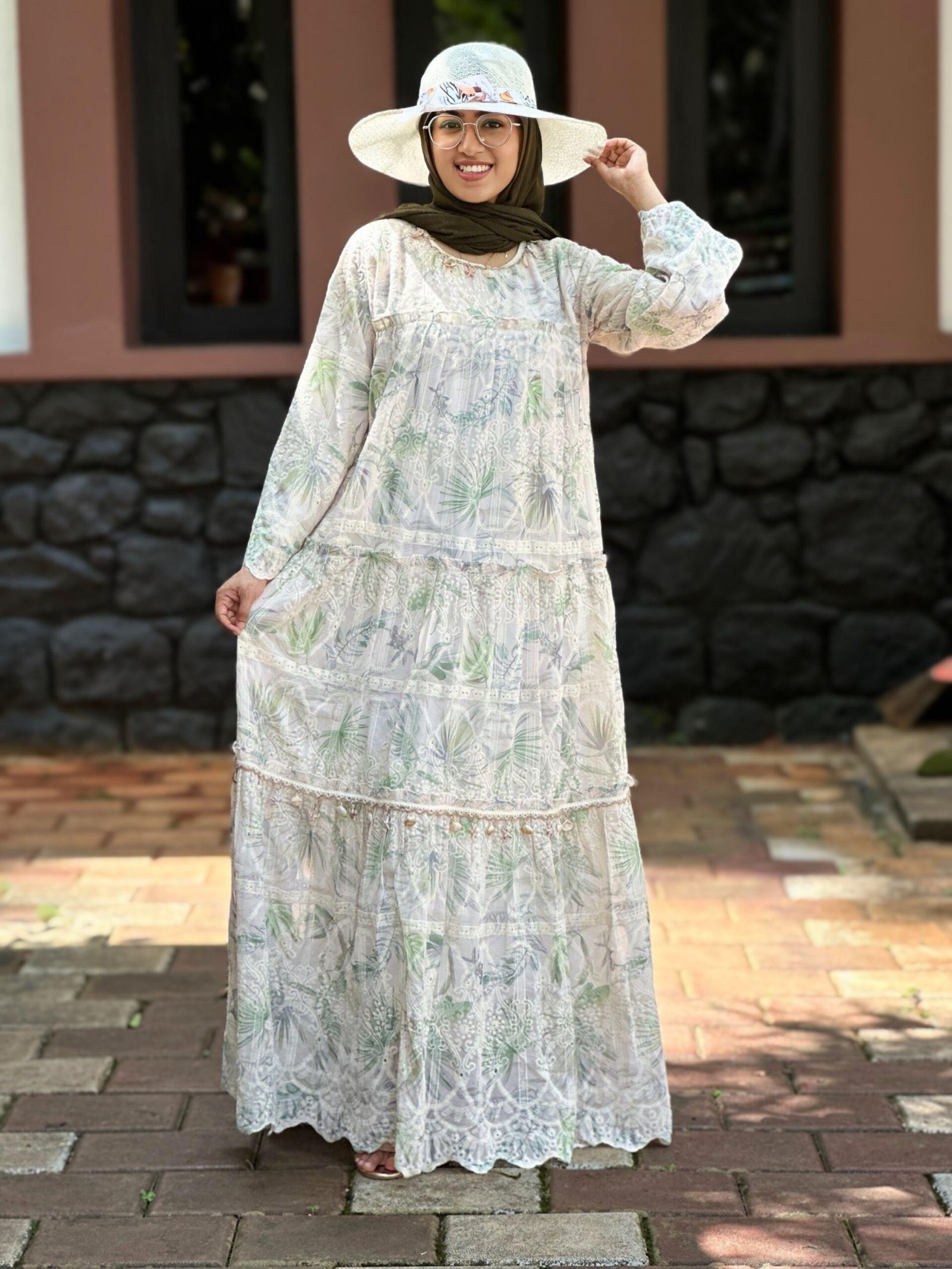 Flowy Tiered Silhouette: The dress features a graceful, full-length maxi cut with multiple gathered tiers, creating beautiful movement and a flattering drape that is universally appealing.