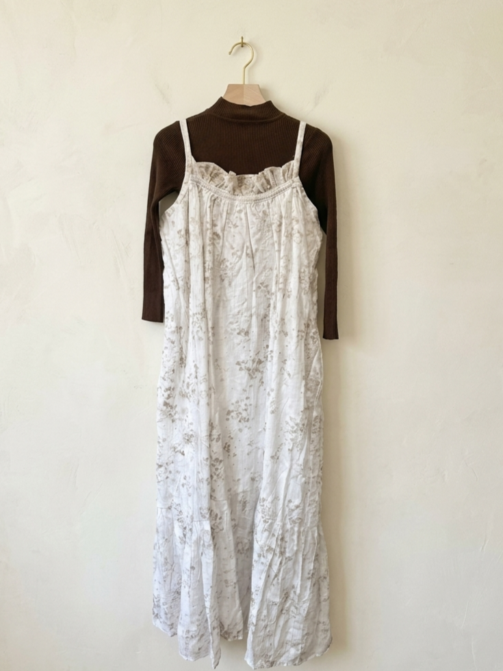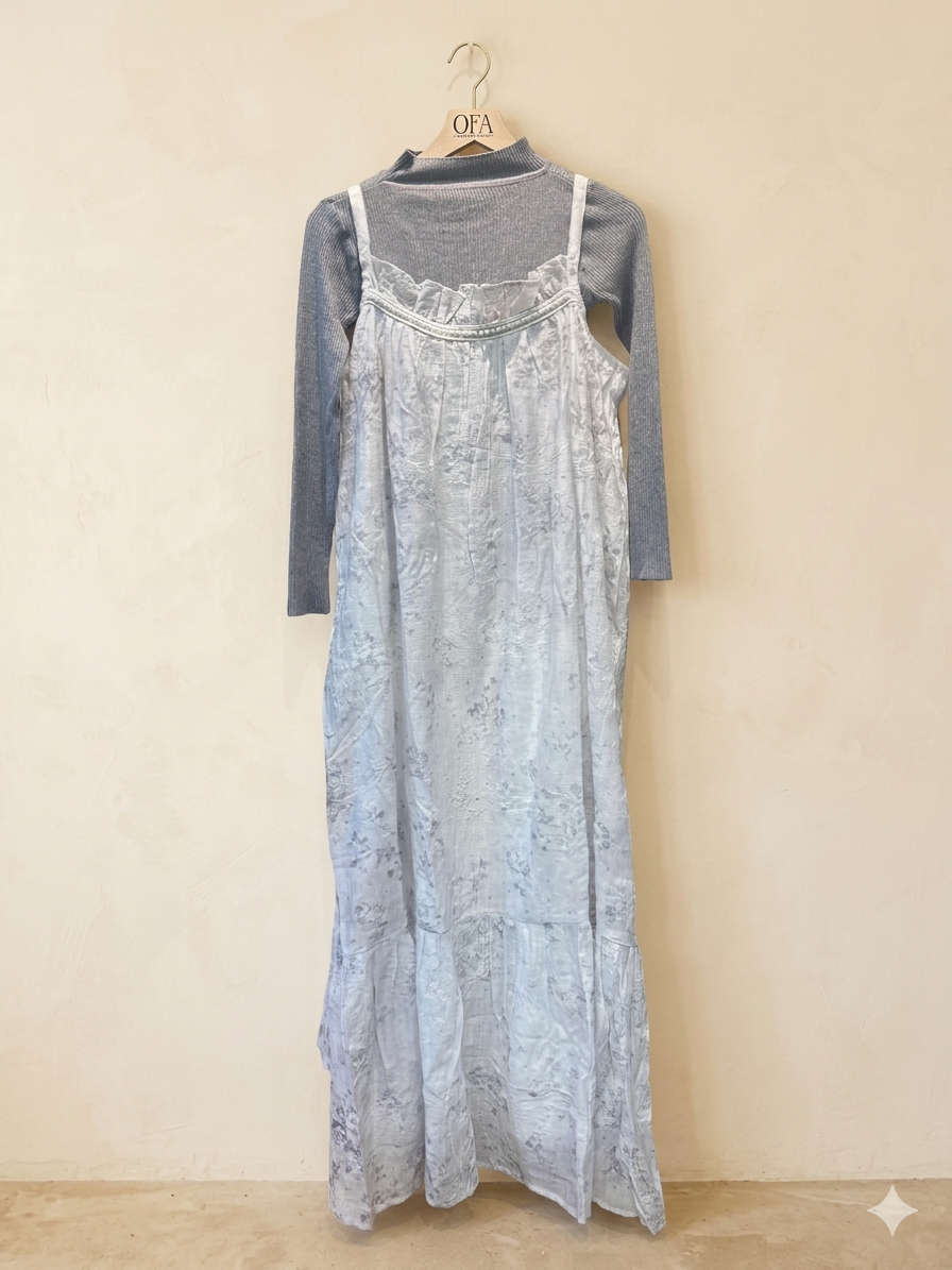 Description: Embrace effortless femininity with the Meadow Whisper Maxi. This enchanting piece features a delicate, faded floral print on a lightweight, textured fabric that catches the light beautifully. Designed with a ruffled sweetheart neckline and elegant lace-trim detailing, its tiered silhouette creates a graceful, flowing movement. Perfect for layering over your favorite long-sleeve basics or wearing solo on sun-drenched afternoons..