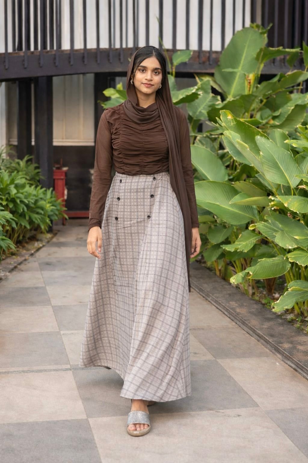 1000759570.jpgClassic Check Skirt & Ruched Top Set
