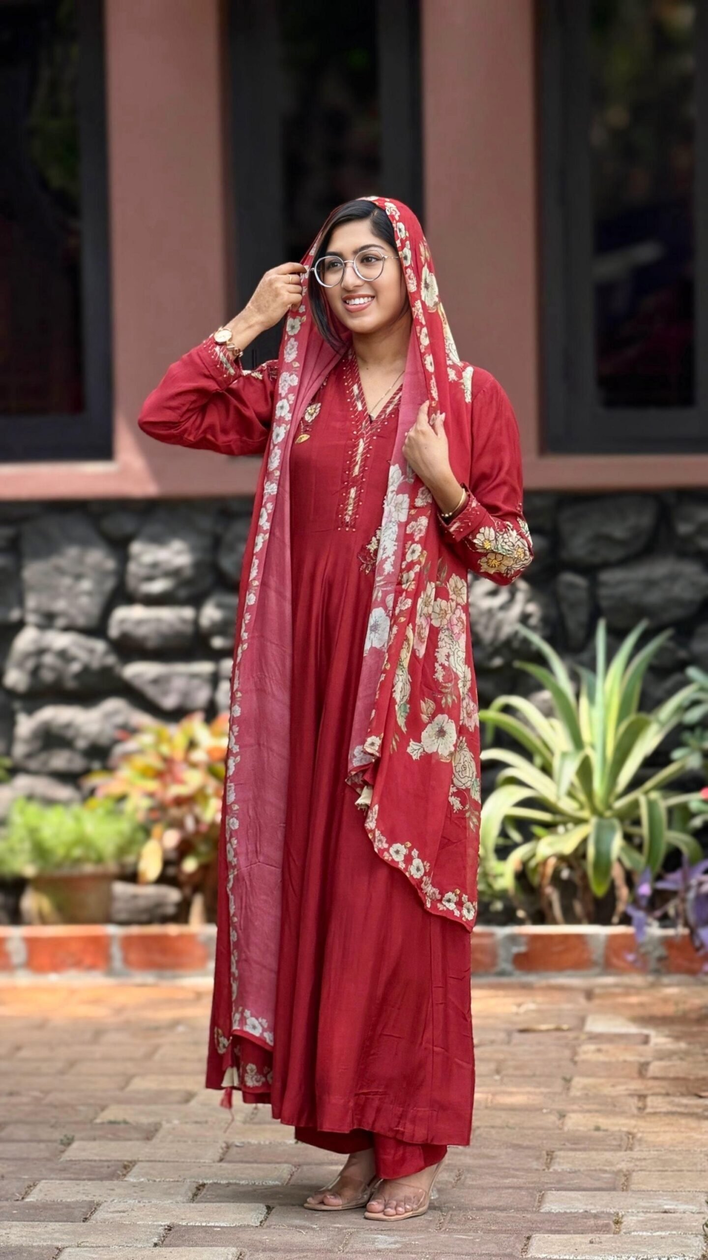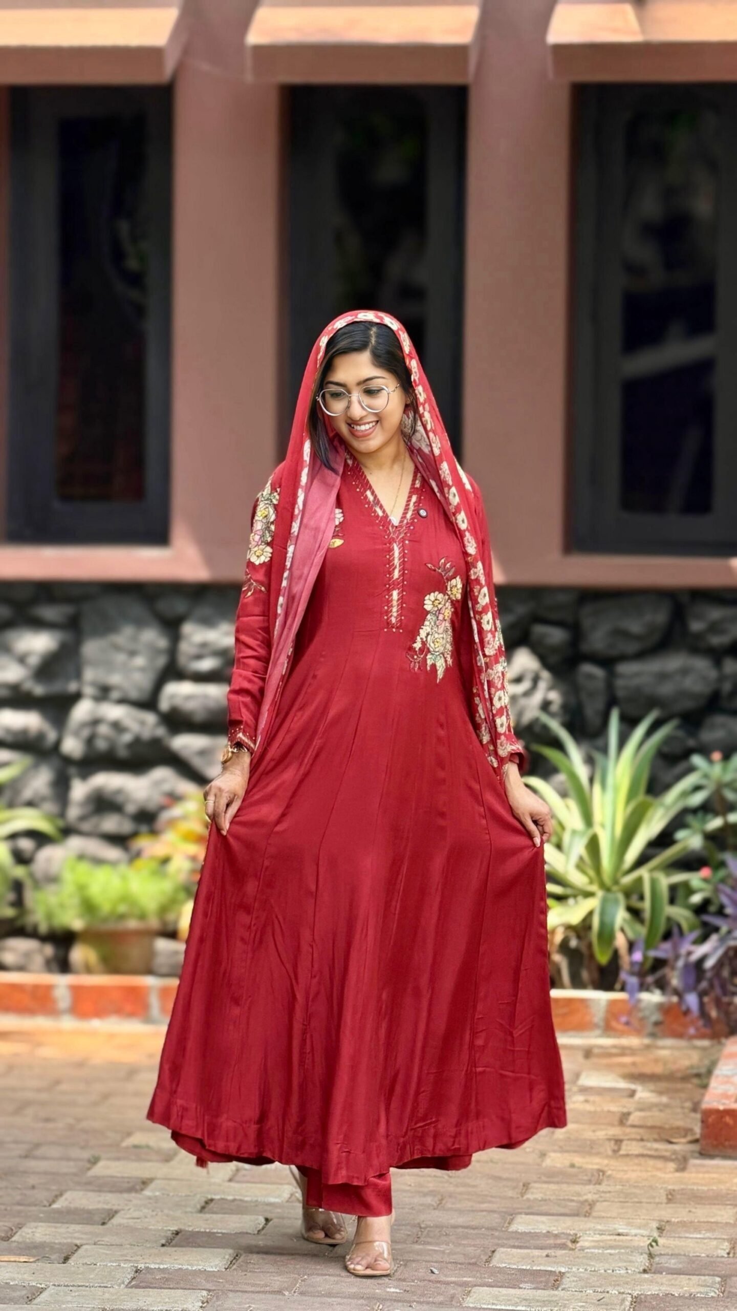 Elevate your ethnic wardrobe with the “Crimson Bloom,” a masterpiece of craftsmanship and fluid silhouettes.